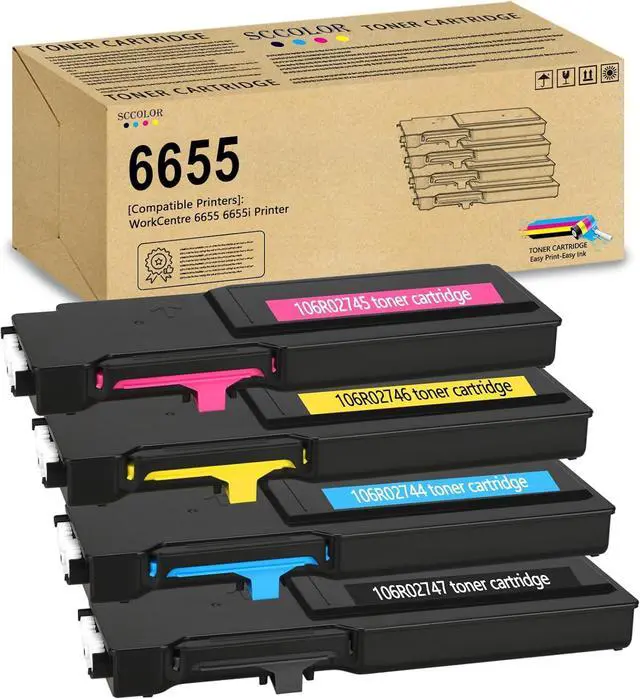 Package Contents:4 Pack 6655 Black Magenta Yellow Cyan Toner Cartridge