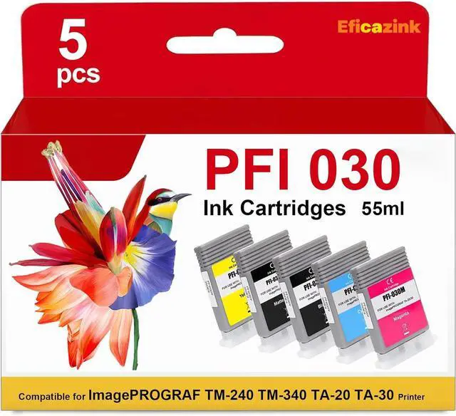 PFI-030 PFI-030BK PFI-030MBK PFI-030C PFI-030M PFI-030Y Ink Cartridge Compatible for ImagePROGRAF TM-240 TM-340 TA-20 TA-30 Printers (5 Pack)