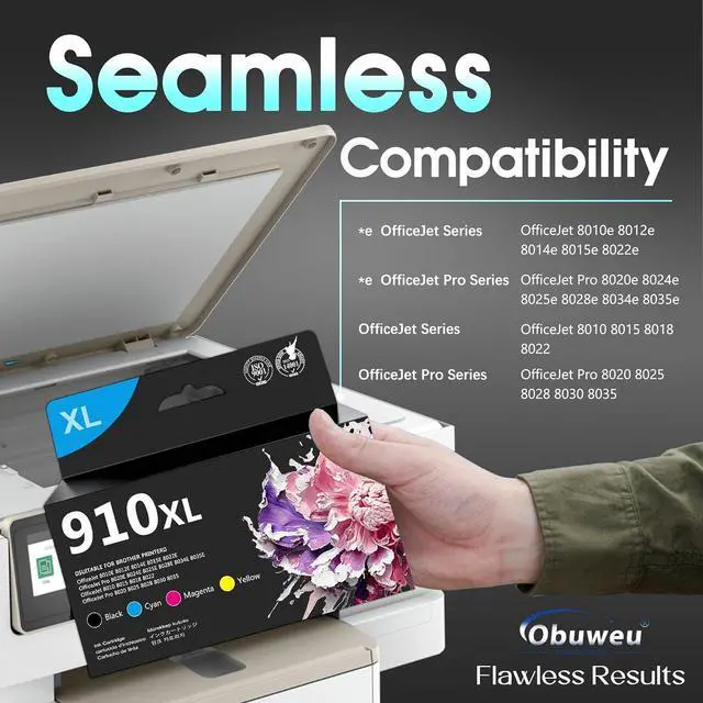 Smart Ink replacement for HP 910XL ink cartridges are compatible with e-series Printers: OfficeJet Pro 8025e, 8020e, 8024e, 8028e, 8034e, 8035e, OfficeJet: 8010e, 8012e, 8014e, 8015e, 8022e; extra compatible printers: OfficeJet: 8010, 8012, 8018, 8022, OfficeJet Pro: 8020, 8021, 8022, 8023, 8024, 8025, 8026, 8028, 8030, 8035
