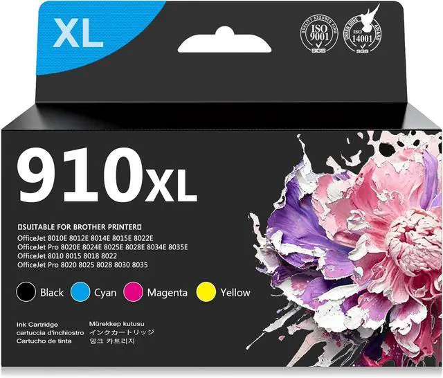 Package Includes: 1x Black 910XL, 1 x Cyan 910XL, 1 x Magenta 910XL, 1 x Yellow 910XL (4 high-yield cartridge multipack)