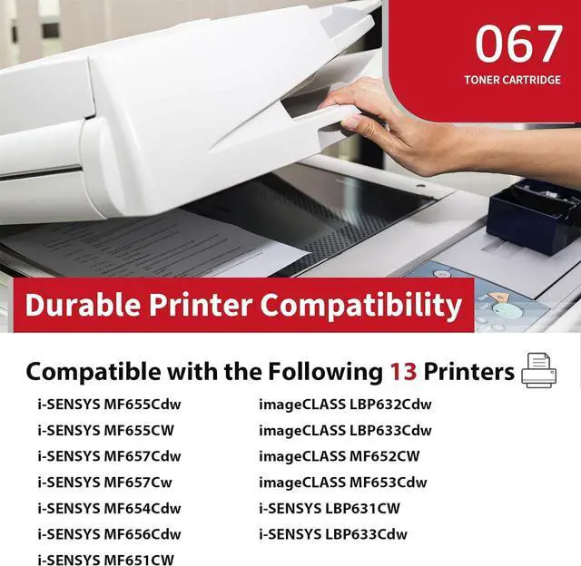 Compatible Printer Models: 067 067H toner cartridges works with imageCLASS LBP632Cdw / LBP633Cdw / MF652CW / MF653Cdw; i-SENSYS LBP631CW / LBP633Cdw / MF651CW / MF655Cdw / MF655CW / MF657Cdw / MF657Cw / MF654Cdw / MF656Cdw Printers