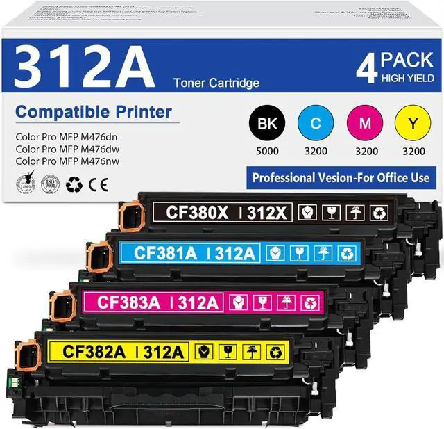 What's Included: This package includes 4-Pack 312A toner cartridges: 1 Black 312X, 1 Cyan 312A, 1 Magenta 312A, 1 Yellow 312A