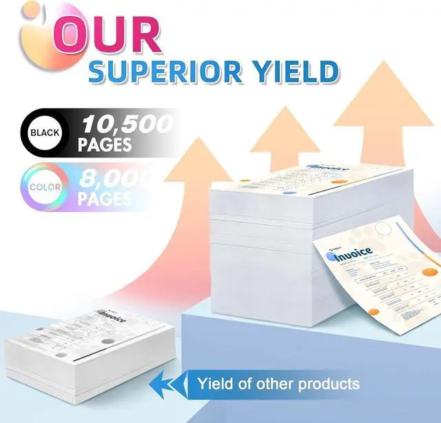 High Page Yield: Up to 10,500 Pages per Black Toner Cartridges & Up to 8,000 Pages per colour Toner Cartridges (Letter/A4, at 5% Coverage)
