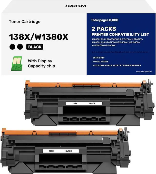 Single-serve packaging with 138X: 2 Pack of W1380X/138X High Yield Black Toner Cartridges