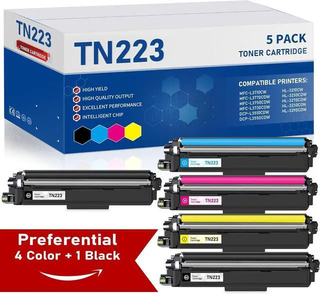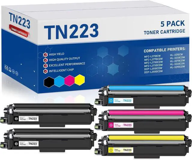 Included: 5 Pack TN223 Replacement for Brother tn223bk/c/m/y Toner Cartridge (2Black+1Cyan+1Magenta+1Yellow)