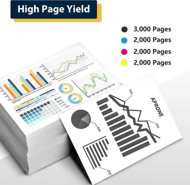 High Pages Yield: Based on the industry standard 5% page coverage, the black cartridge yields approximately 3,000 pages.2,000 Pages per color
