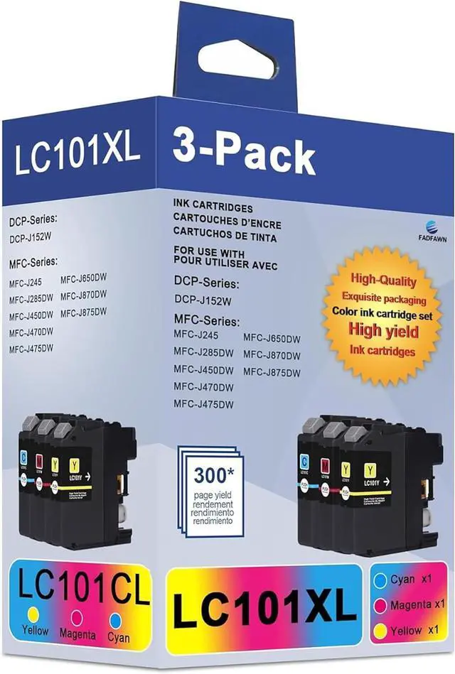 Sealed Package: LC101 XL High Yield Ink Cartridges, LC101C Ink Cartridge, LC101M Ink Cartridge, LC101Y Ink Cartridge (total 3-Pack)