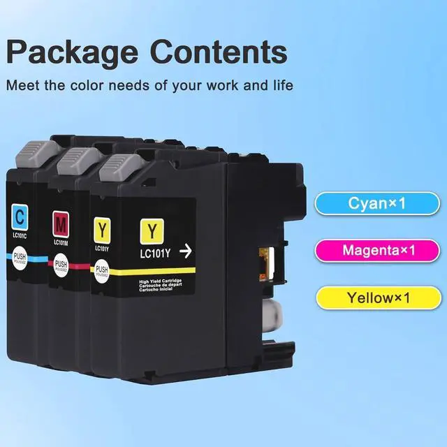 Upgrade of smart chips: The upgraded LC101 c/m/y ink cartridges perfectly achieved 100% compatibility, performance, print quality and higher page yield
