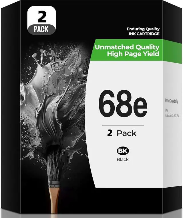What's in the box: 2 × 68e Black Ink Cartridge (Total 2 new 68e Ink Cartridges Black Pack)