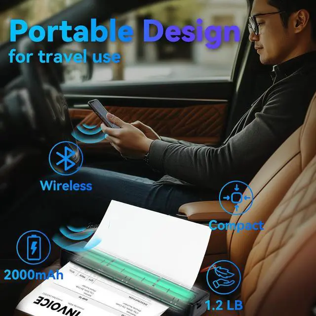 PORTABLE PRINTERS WIRELESS FOR TRAVEL : Designed for convenience, X8 is perfect for travelers. Weighing only 1.23 pounds and powered by a reliable 2000mAh battery, it offers long-lasting performance for on-the-go printing. Its lightweight and compact design make it easy to slip into a bag or backpack, ensuring seamless operation wherever you go.