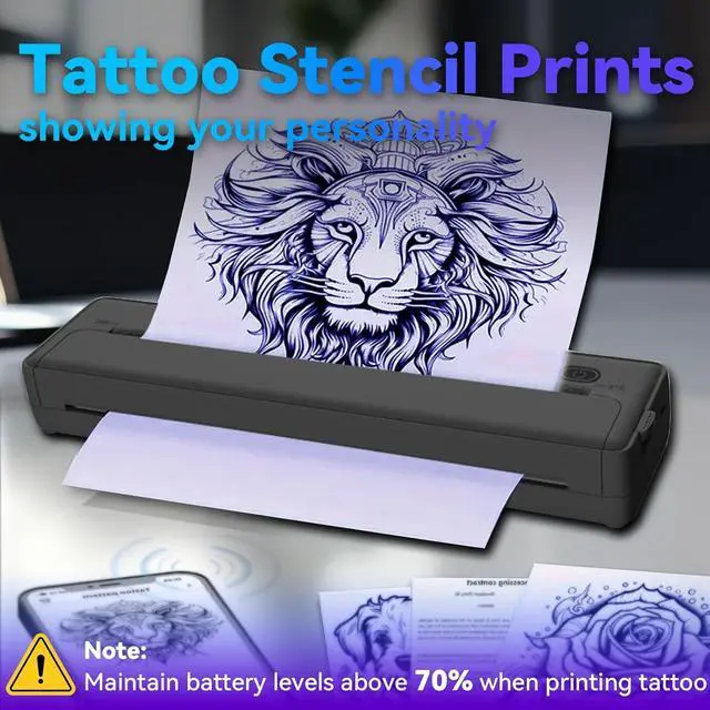 IMPORTANT NOTES : Ensure optimal performance by using thermal or stencil paper only. For best tattoo results, maintain battery levels above 70% to avoid blurry prints.
