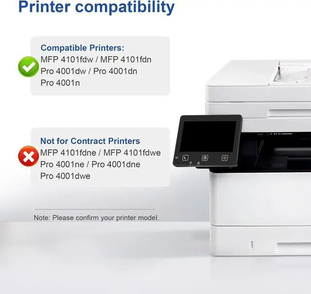Warning: Not compatible with HP Pro 4001dne 4001dwe 4001ne MFP 4101dwe 4101fdne 4101fdwe printer