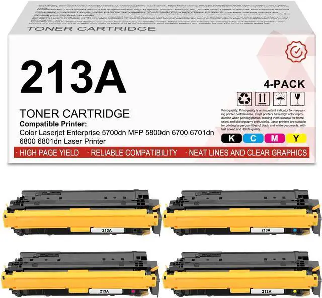Package Content: Total 4 pack 213A toner cartridges, 1 Black W2130A Toner, 1 Cyan W2131A Toner, 1 Yellow W2132A Toner,1 Magenta W2133A Toner
