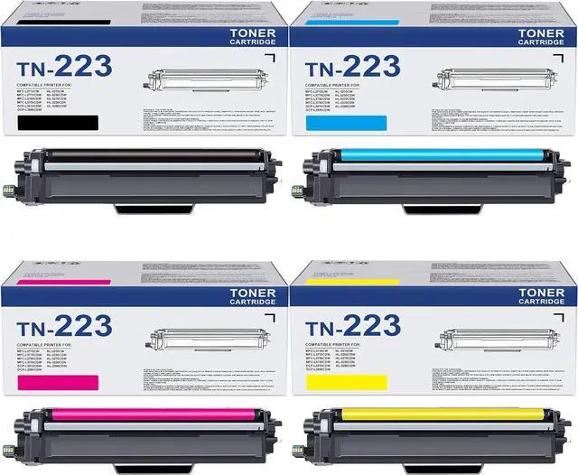 Package Contents: 1 x Black TN223BK Toner, 1 x Cyan TN223C Toner, 1 x Magenta TN223M Toner, 1 x Yellow TN223Y Toner (TN-223BK/C/M/Y)