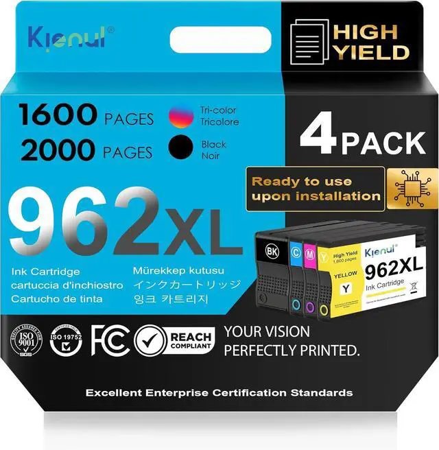 Package Contains: 1×962XL Black Ink, 1×962XL Cyan Ink, 1×962XL Magenta Ink1×962XL Yellow Ink