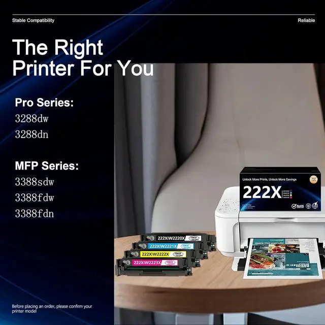 Compatible Printers: Works seamlessly with Pro 3288dw, 3288dn, MFP 3388sdw, 3388fdw, and 3388fdn printers. Each Toner 222X is designed for reliable printer recognition and smooth operation