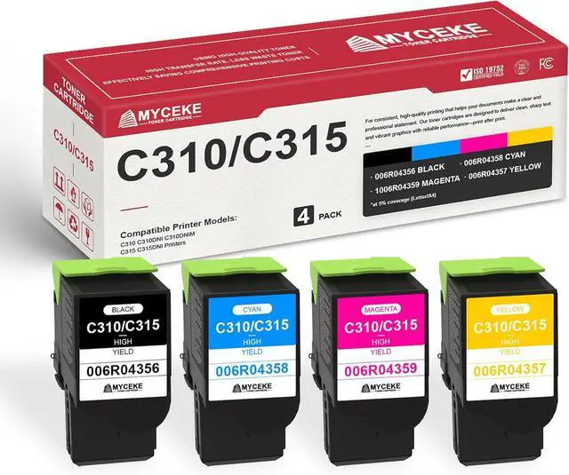 Product package includes : 4 pack of C310/C315 toner cartridges - C310/C315 Black Toner Cartridge (006R04356) x 1, C310/C315 Cyan Toner Cartridge (006R04358) x 1, C310/C315 Magenta Toner Cartridge (1006R04359) x 1, C310/C315 Yellow Toner x 1 (006R04357)