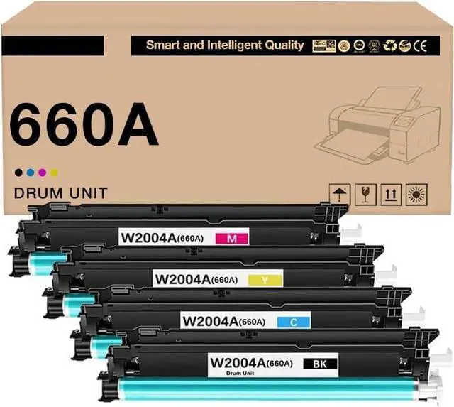The packaging contains: 4 Pack 660A W2004A Drum Unit (Black Cyan Yellow Magenta)
