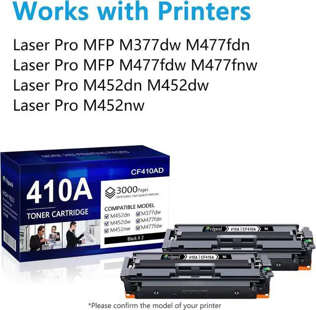 Printer Compatibility: 410A black toner 410A 410X toner cartridges works with Color Pro MFP M477fdw,Color Pro MFP M477fnw,Color Pro M452dn,Color Pro M452nw,Color Pro MFP M477fdn M377dw M452dw M477 477fdw 477fnw M452 Printer