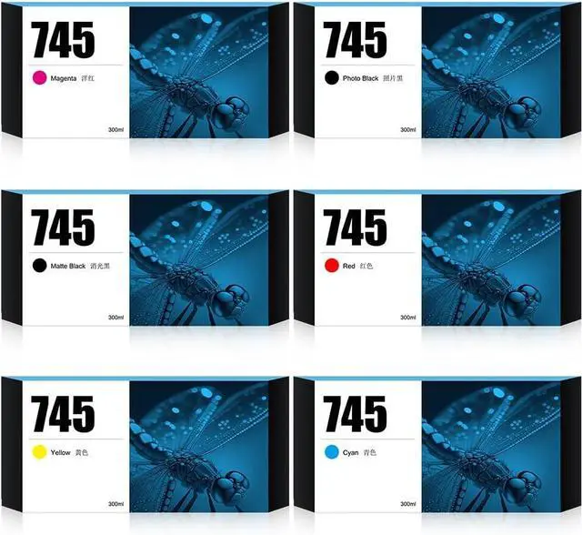 What You Get: 6-Pack High-Quality Compatible Ink Cartridges for hp 745 (300ml Matte Black/ Photo Black/Cyan/Magenta/Yellow/Chromatic Red ) and our friendly customer service