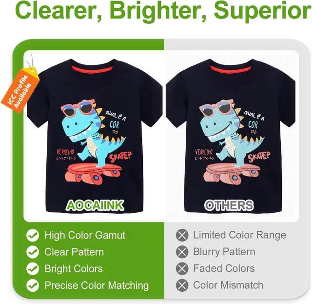 Vibrant, Lasting Freshness: AOCAIINK DTF printer ink delivers rich colors, sharp details, and photo-quality prints with a fade-resistant formula. Even after multiple washes and sun exposure, your clothes remain vibrant and fresh