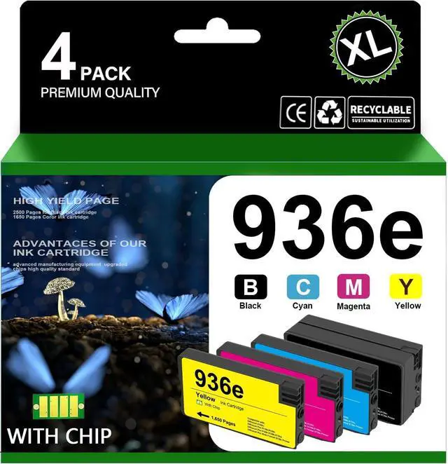 Package Contents: 4 Pack 936 Ink Cartridge - 1 Black1 Cyan, 1 Yellow, 1 Magenta
