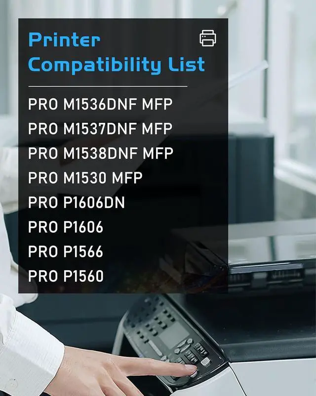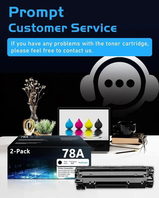 Printer Compatibility: Compatible with the 78A black toner cartridge (CE278A) for use with Pro P1606dn P1566 P1560 P1606 Pro MFP 1530 M1536dnf M1537dnf M1538dnf MFP Printer