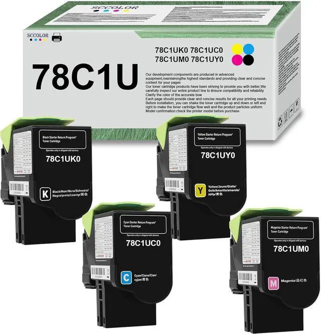 Package includes:total 4 pack.78C1UK0 Black Toner Cartridge,78C1UC0 Cyan Toner Cartridge,78C1UM0 Magenta Toner Cartridge,78C1UY0 Yellow Toner Cartridge