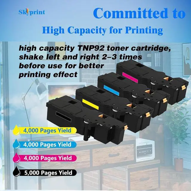 SkyPrint TNP-92 TNP92 toner cartridges come with intelligent chips that automatically recognize and provide printing, Not damaging the machine Shake the toner cartridge horizontally 2-3 times before use to evenly distribute the toner,providing you with better clear and natural printing effects