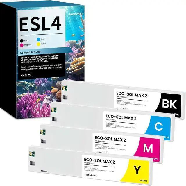Package Contents: 440ml ECO-SOL MAX 2 Ink Cartridge (1× ESL4-4BK Black, 1× ESL4-4CY Cyan, 1× ESL4-4MG Magenta, 1× ESL4-4YE Yellow)