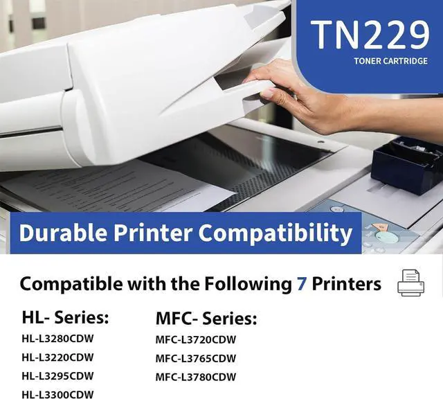 Compatible Printer Models: TN229 TN-229 toner cartridges works with HL-L3280CDW HL-L3220CDW HL-L3295CDW HL-L3300CDW MFC-L3720CDW MFC-L3765CDW MFC-L3780CDW Printer