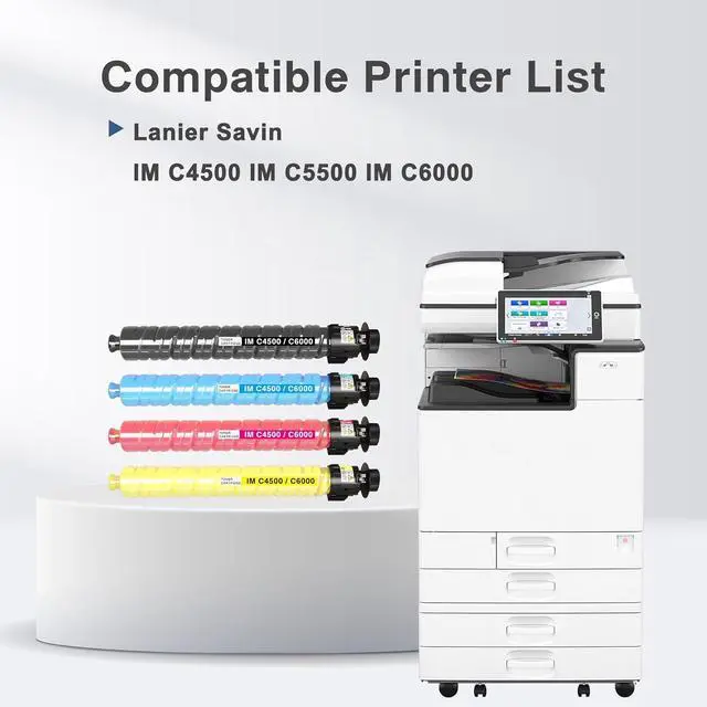 Compatible Printer List: Our IM C4500 toner cartridges designed replacement for Ricoh Aficio Lanier Savin IM C4500 IM C5500 IM C6000 IMC4500 IMC5500 IMC6000 printers, ensuring perfect alignment and functionality to keep office printers running smoothly, please confirm your printer model before placing the order.
