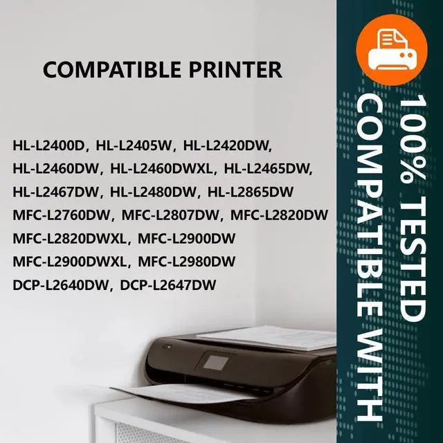 Works with Printers:HL-L2400D, HL-L2405W, HL-L2420DW, HL-L2460DW, HL-L2460DWXL, HL-L2465DW, HL-L2467DW, HL-L2480DW, HL-L2865DW, MFC-L2760DW, MFC-L2807DW, MFC-L2820DW, MFC-L2820DWXL, MFC-L2900DW, MFC-L2900DWXL, MFC-L2980DW, DCP-L2640DW, DCP-L2647DW.