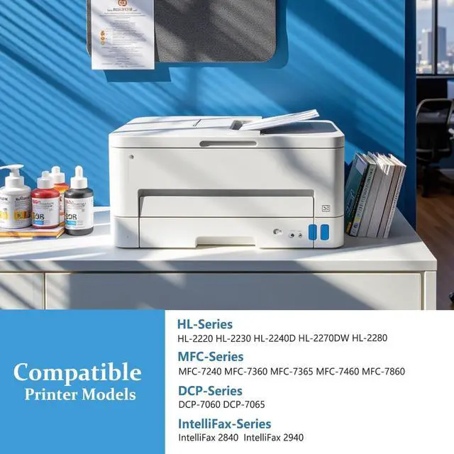 Compatible Printer Models: HL-2220 HL-2230 HL-2240D HL-2270DW HL-2280 MFC-7240 MFC-7360 MFC-7365 MFC-7460 MFC-7860 DCP-7060 DCP-7065 IntelliFax 2840 2940 Printer