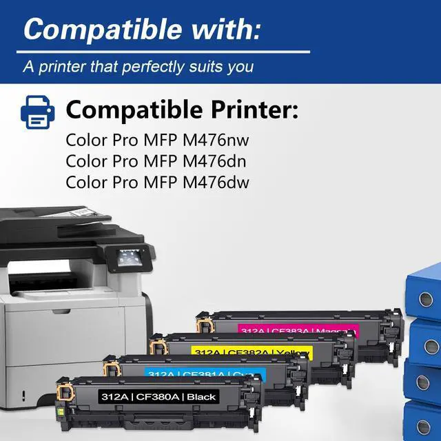 Works with: Replacement for HP 312A Black/Cyan/Magenta/Yellow Toner Cartridge, Compatible for Color Laser Pro MFP M476nw M476dn M476dw