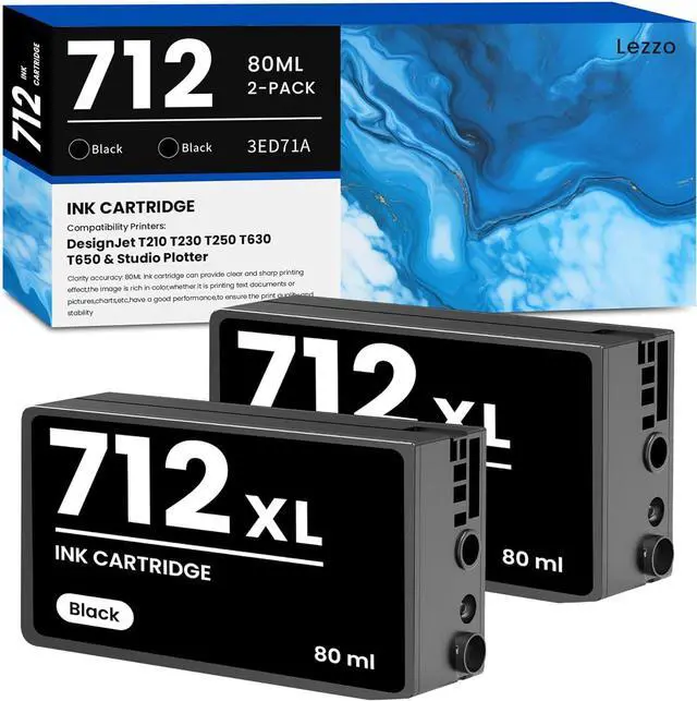 Products in the package: 2 Pack 712 712XL 3ED71A Black Ink Cartridge