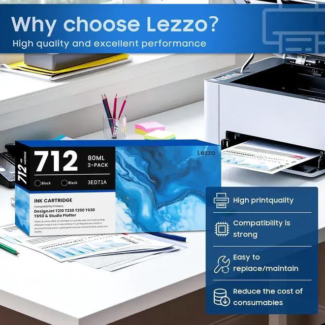 Quality Assurance: Lezzo 712XL ink cartridge is dual ISO-9001 & ISO-14001 certified. Precision-engineered with premium-grade materials through rigorous testing to ensure quality and compatibility with your printer
