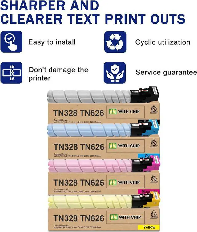 High Page Yield:TN328 TN626 28,000 pages per Black;28,000 pages per cyan magenta yellow,at 5% coverage of A4 Letter
