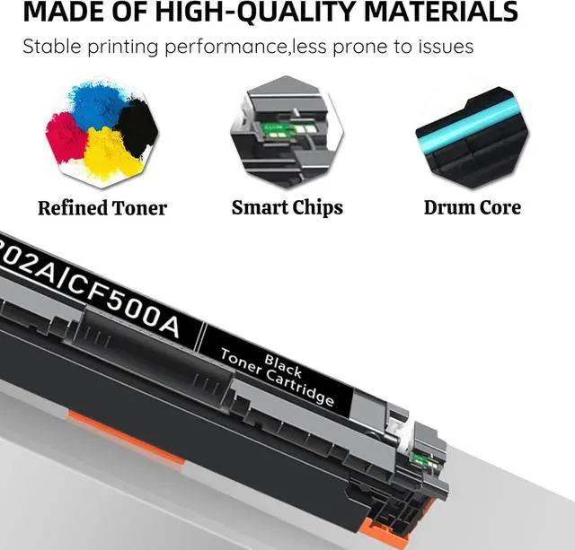 Include: 4-Packs 202A Black Cyan Magenta Yellow Compatible High Yield Toner Cartridges