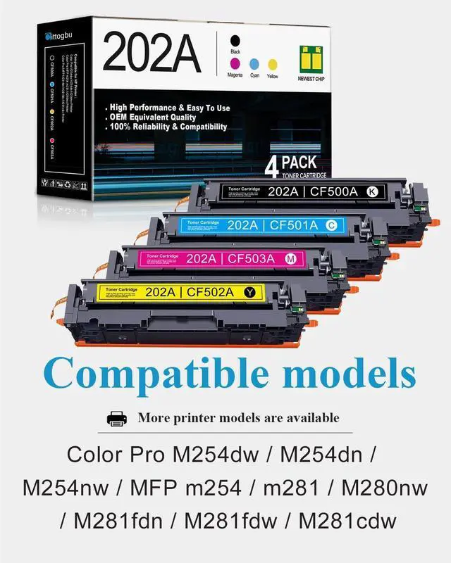 Compatible with printers: 202A toner cartridges Color Pro M254dw M254dn M254nw MFP m254 m281 M280nw M281fdn M281fdw M281cdw Printers
