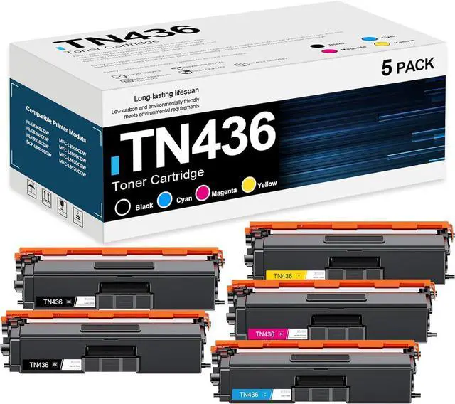 Sealed packaging: 5-Pack TN436 TN-436 Toner Cartridge Set High Yield (2 Black ,1 Cyan, 1 Magenta, 1 Yellow)