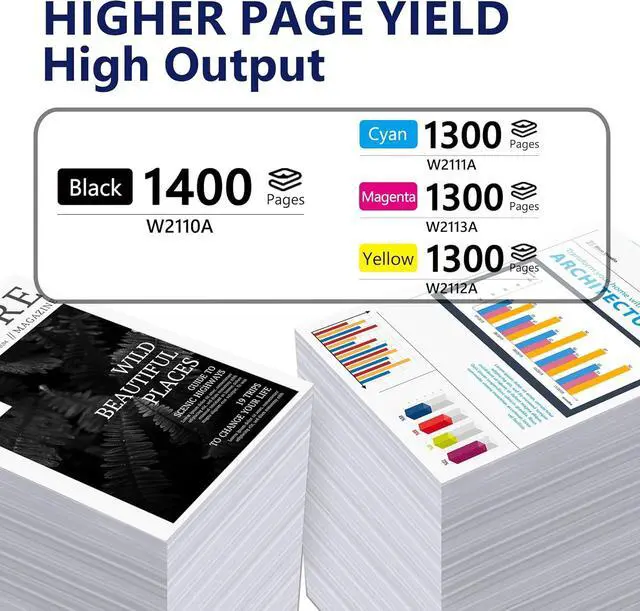 High Page Yield:206A black toner up to 1,400 pages, color toners up to 1,300 pages (at 5% coverage, Letter/A4); works with M283fdw, M283cdw, M255dw printers