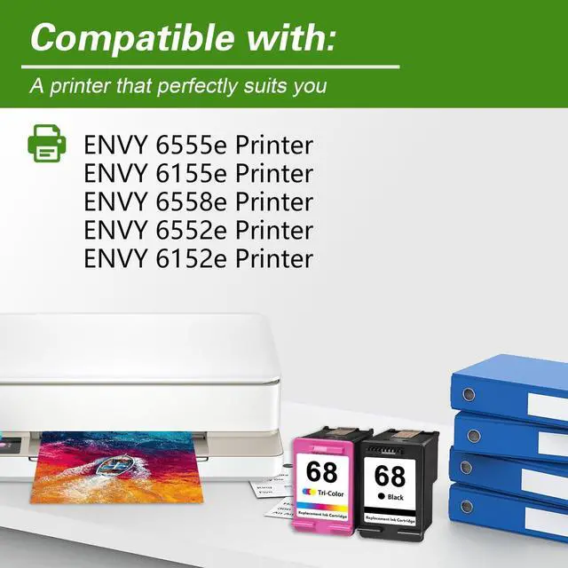 Compatible Printers Model: 68 ink cartridges combo compatible for HP ENVY 6555e ENVY 6155e ENVY 6558e ENVY 6552e ENVY 6152e printers