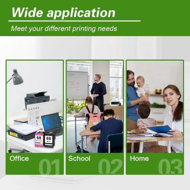 Package Contents: Include 68 68XL ink black tri-color combo pack(2 Pack, 1BK/1Tri-Color)