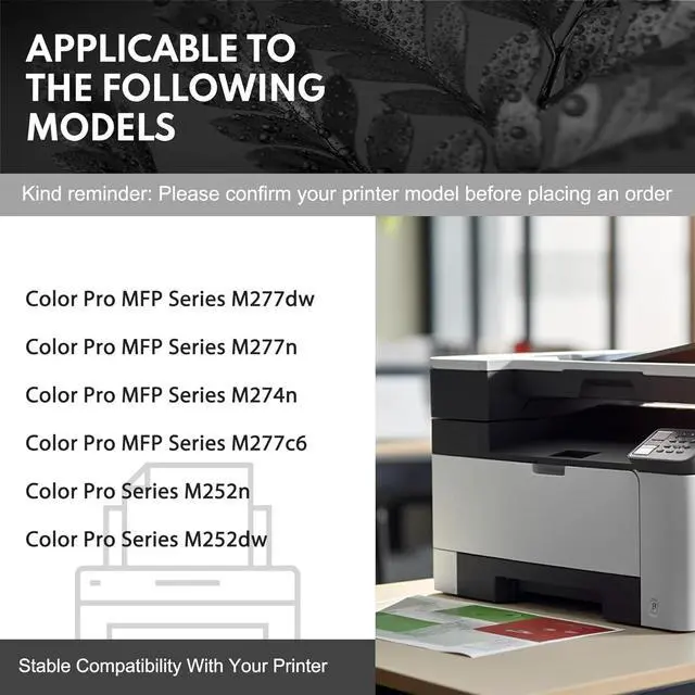 Wide compatibility: Compatible Color Pro MFP Series M277dw M277n M274n M277c6 printer, Color Pro Series M252n M252dw printer