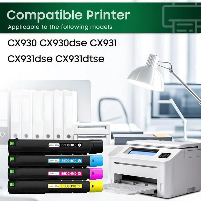 Products in the package: CX930 CX931 High Capacity Toner Cartridge 4 Pack,1x 85D0HK0 black toner,1x 85D0HC0 cyan toner,1x 85D0HY0 yellow toner,1x 85D0HM0 magenta toner