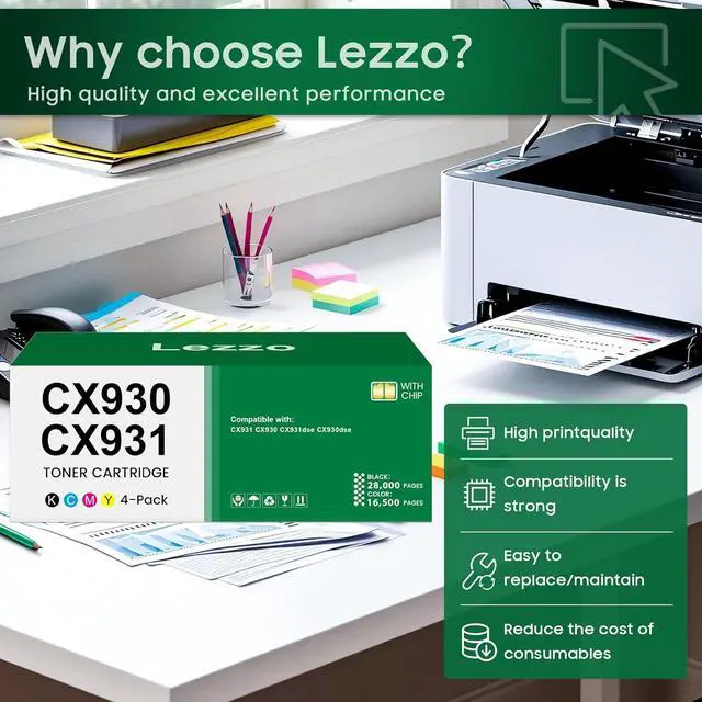 Quality Assurance: Lezzo CX931 toner cartridge is dual ISO-9001 & ISO-14001 certified. Precision-engineered with premium-grade materials through rigorous testing to ensure quality and compatibility with your printer
