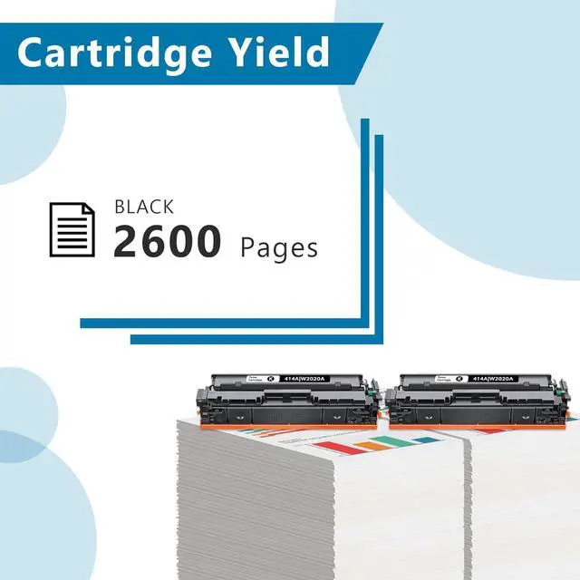 What's in the Box: Replacement for hp 414A toner cartridge includes 2 New 414A Black Toner Cartridges, W2020A