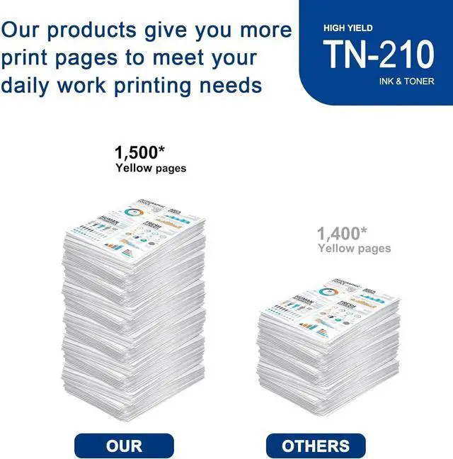 Page Yield: 1,500 pages per TN210 Yellow Toner Cartridge at 5% coverage (Letter/A4).