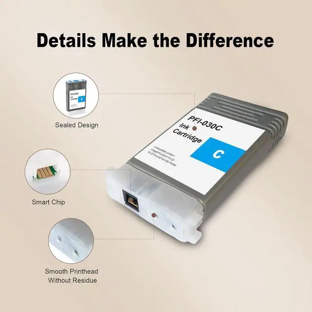 Superior Quality: This high-yield PFI-030 ink cartridge uses the latest chip technology and high-quality pigment ink, with an anti clogging nozzle design and easy installation. Provide clear text and graphics, comparable to the original